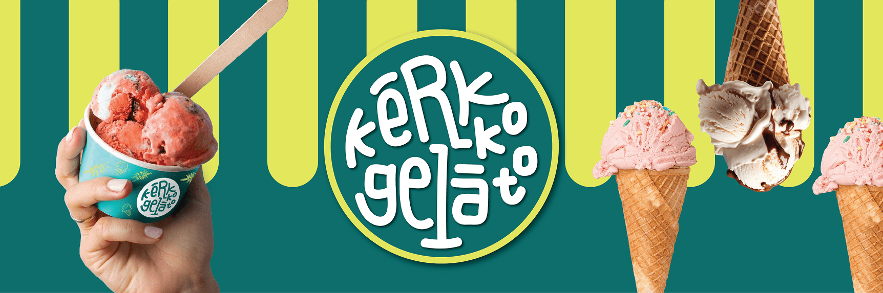Kerkko Gelato brings joy with every scoop, offering deliciously crafted gelato in a fun and inviting atmosphere. We had the opportunity to shape its visual identity, from designing the logo to creating packaging, product stationery, banners, and other store essentials. Our goal was to craft a fresh and playful look that reflects the delight of every bite, ensuring a cohesive and memorable brand experience. Through thoughtful branding, we helped Kerkko Gelato stand out as a vibrant and exciting treat for everyone.